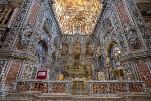 PALERMO, ITALY, JUNE 15, 2023 - The altair of the Church of Santa Caterina d'Alessandria in the historic center of Palermo, Sicily, Italy