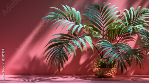 palm frond silhouettes dancing on pink walled room