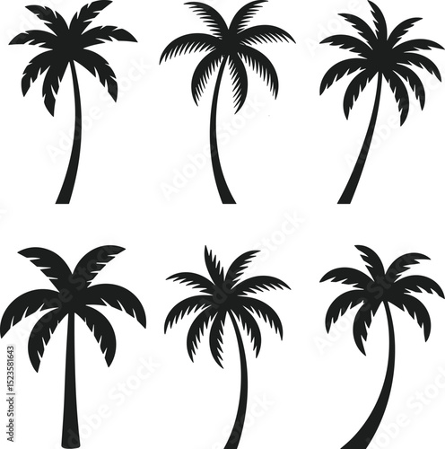 Palm Tree Silhouette Collection – Tropical Beach Nature Vectors Set