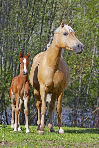 animal, mammal, horse, foal, together, family, protection, equine, farm animal, grass, tree, background, pasture, field, summer, nature, zoology