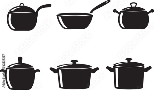pan, pot, kitchen, isolated, cooking, saucepan, white, steel, food, metal, utensil, object, cook, stainless, kitchen utensile, cooker, equipment, dinner, handle, set, black, casserole, lid, soup, empty, cookery, frying pan, clip art, graphic, heat, signs, silhouette, single, tool, simple, chef, domestic, element, fries, home, household, illustration, iron