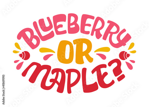 Pancake themed lettering phrase - Blueberry or mapple. Text for shovetide events, cafe designes and any other purpose.