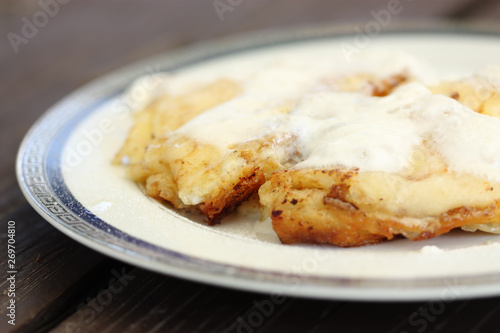 battercake, battercake, flapjacks, food, baked, vegetarian, homemade, plate, polish, ukrainian, russian, sweet food, dessert, whipped cream, cottage cheese, closeup, cropped, vegetarian food, nutrient, nobody, meal, breakfast, snack, epicure