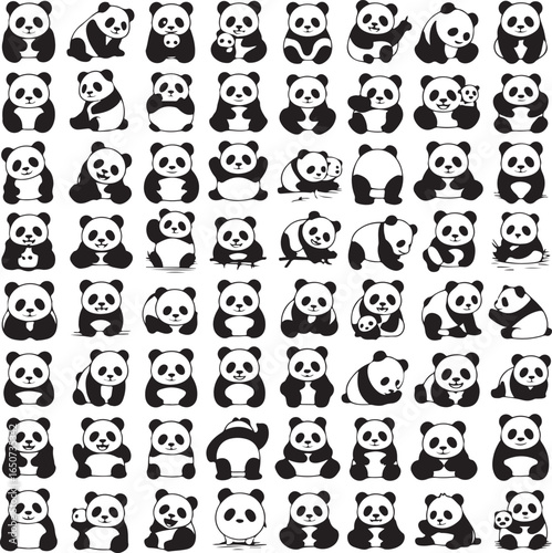 Panda Bundle Vector – Cute and Wild Panda Silhouette Collection Panda Head and Full Body Vector Bundle – Cartoon and Wildlife Design Panda Silhouette Bundle – Animal Clipart Set for Logo, Art, and D