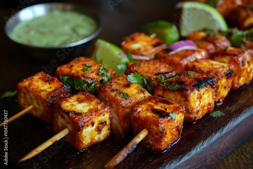 Paneer tikka, a vibrant Indian street food, beautifully presented.