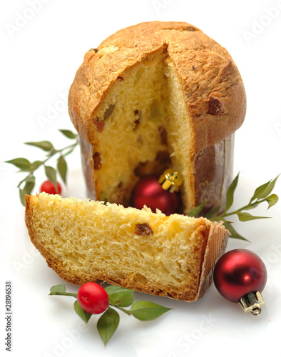 christmas, panettone, tradition, sugar, christmassy, christmas, decoration, party, ball, berry, holiday, christmas, dessert, italy, italian, milan, vertical, food, food, alimentation, slice, open, gastronomy, leaf, berry, red, traditional, white, background, isolated, calorie, atmosphere, holly, children, hag, dinner, decoration, sweet, typical, red, ball