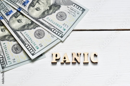 Panic is a sudden uncontrollable fear or anxiety, often causing wildly unthinking behaviour. dollars on a white background