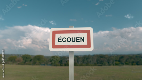 Panneau de la ville de Écouen. Entrée dans la municipalité.