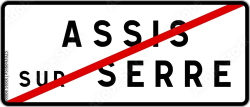 Panneau sortie ville agglomération Assis-sur-Serre / Town exit sign Assis-sur-Serre
