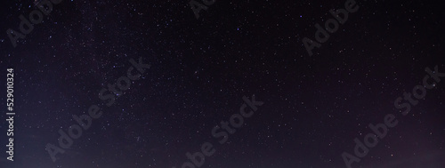 Panorama blue night sky milky way and star on dark background.Universe filled with stars, nebula and galaxy with noise and grain.