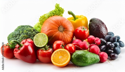 panorama bright vegetables and fruits isolated on white