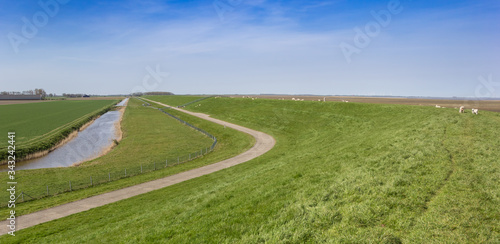 Panorama of a dike in the landscape of Groningen, Netherlands