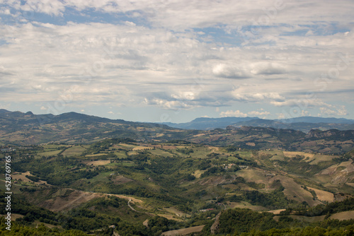 Panorama of a hilly landscape.