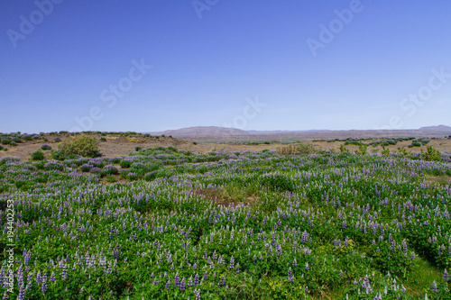 Panorama of the lupine fields in Iceland
