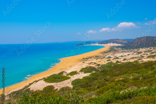 Panorama view of the Golden Beach is the best beach of Cyprus, Karpas Peninsula, North Cyprus.