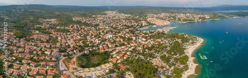 Panoramic aerial view of Krk cityscape during the summer, Croatia.