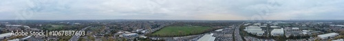 Panoramic Birmingham Perry Barr Central City. It is a major city in England, West Midlands Region of United Kingdom. Drone's Camera Footage During Mostly Cloudy Early Morning on November 4th, 2024