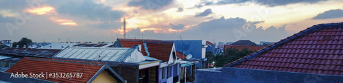 Panoramic building in the city on a sunny afternoon