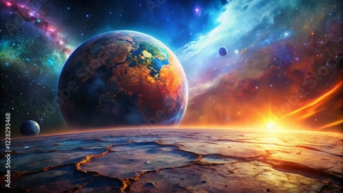 Panoramic Grunge Planet: Distressed Earth Texture Background - Cosmic Landscape