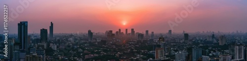 city, architecture, town, house, rural, mountain, ecology, sea, blue skies, setting sun, ray, sunshine, aerial photography, panorama, looking down, scenery