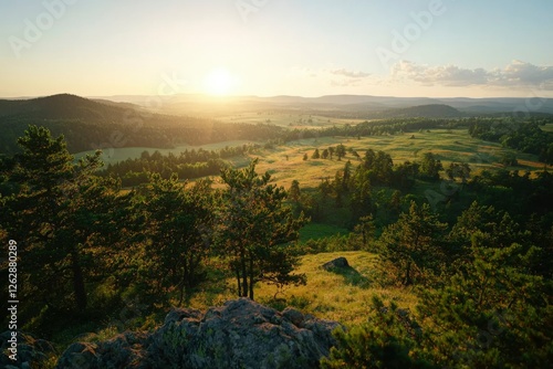 sunset, view, hill, vale, landscape, mountain, nature, outdoors, scenic, sunrise, panoramic, forest, sky, cloud, horizon, gold, light, photo, hilltop, mountain view, grass, tree, green, peak, meadow, panorama, summer, sunlight, dramatic, cloudscape, expansive, elevation, travel, vacation, explore, adventure, relaxation, serenity