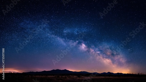 sky, star, night, galaxy, milky way, dark, blue, purple, orange, landscape, horizon, mountain, celestial, cosmic, space, universe, nebula, astral, bright, shimmering, distant, aglow, breathtaking, awe, wonder, expansive, huge, twinkling, cluster, aethereal, mysterious, stunning, scenic, natural, outdoors, adventure, exploration, silence, peace, calmness, depth, panorama, clarity, discovery, observing, midnight, elevation, nocturnal