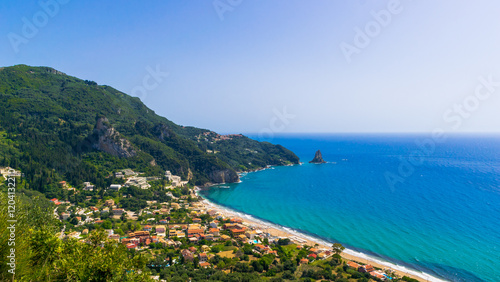 beach, summer, travel, forest, sea, mountain, green, colourful, greece, europa, beautiful, natural, island, mediterranean, coastline, turquoise, coast, greek, coastal, traditional, bay, corfu, aerial, village, ionian, paradise, rural, scenery, scene, picturesque, aerial view, destination, greek islands, scenic, stunning, sunny, tranquil