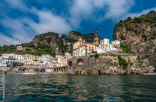 Panoramic view of Atrani, small village on Amalfi Coast, Italy