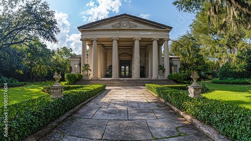 museum, architecture, greek, revival, column, facades, landscaping, garden, historical, structure, entrance, openness, sun, sky, nature, design, symmetry, classical, heritage, culture, beauty, scenery, tour tourism, travel, scene, photo, perspective, vibrant, greenery, serene, tranquil, detail, light, shadow, art, elegance, classic, line, feature, preservation, aesthetic, construction, environment, location, attraction, visual