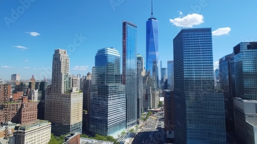 city landscape, skyline, skyscraper, building, urban, architecture, metropolis, downtown, view, city, high, tower, modern, blue, sky, cloud, tall, office, business, construction, concrete, glasses, street, road, car, travel, landmark, financial, district, exterior, perspective, day, sunny, tour tourism, aerial, panoramic, vibrant, scenic, majestic, iconic, contemporary