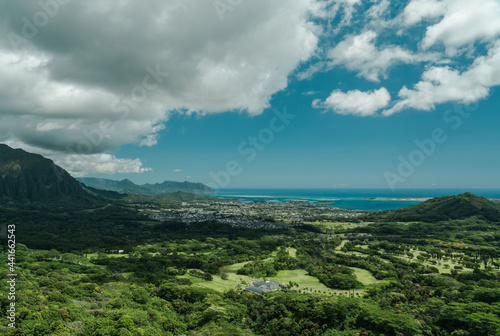 hawaii, oahu, honolulu, landscape, sky, mountain, nature, green, blue, mountain, cloud, cloud, forest, view, panorama, summer, hill, vale, travel, tree, tree, sun, scenic, sea, countryside, hill, beautiful, grass