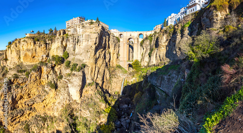 Panoramic view of Puente Nuevo bridge in Ronda city, Andalusia, Spain