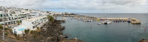 panoramic view, lanzarote, panoramic, marina, port, beach, sun, vacation, water, sea, sky, coast, travel, panorama, landscape, island, harbor, harbor, summer, tour tourism, bay, holiday, boat, ocean, boat