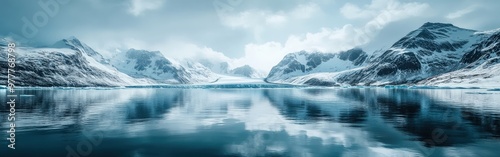 Panoramic View of Snow-Capped Alaskan Mountains and Reflecting Blue Lake