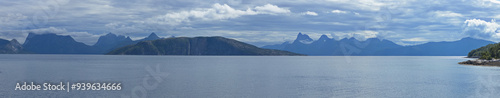 Panoramic view of the coast at Bognes in Nordland county, Norway, Europe