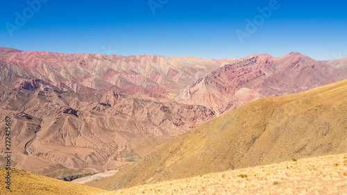 Panoramic view of The Hornocal the 14 colours mountain in Humahuaca, northwest of Argentina