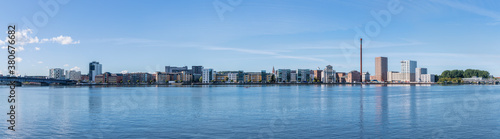 Panoramic view of the waterfront of the western city of Aalborg from Limfjordsbroen bridge to Kulturbroen bridge