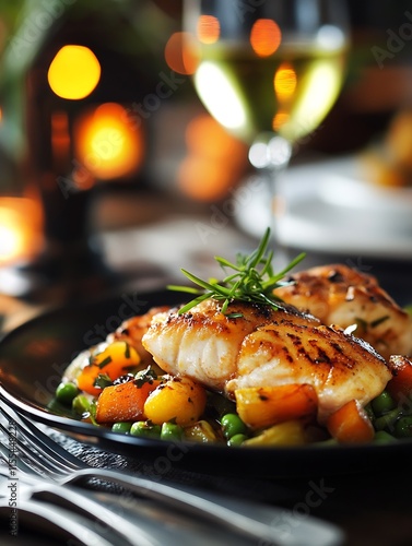 PanSeared Cod Fillet with Garden Vegetables and Herb Garnish for a Fine Dining Experience : Generative AI