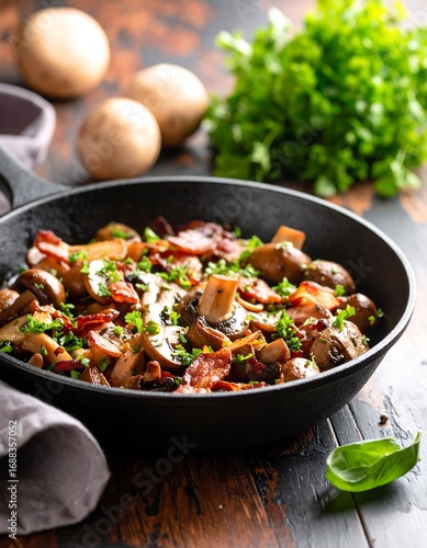 mushroom, bacon, food, receipe, cooking, dish, vegetable, healthy, dinner, meal, delicious, ingredient, protein, garlic, seasoning