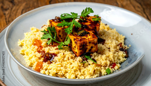 tofu, couscous, glaze, vegan, vegetarian, health food, food photography, dinner, receipe, meal, dish, cookery, epicure, delicious, tasty, appetence, cooking, image, eatery, plate, parsley, healthy eating