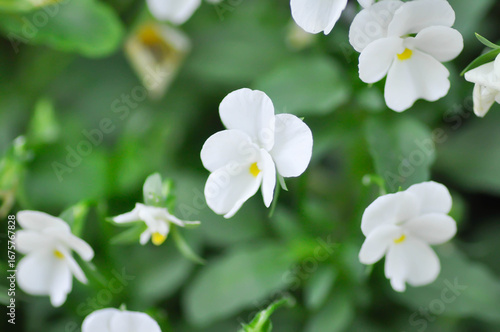 Pansies, Pansy or Viola or Viola cornuta or Viola lutea or Viola x wittrockiana flower or white pansy flower