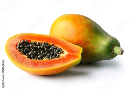 papaya, fruit, food, tropical, fresh, isolated, healthy, orange, ripe, half, cut, exotic, seed, sweet, white, papaya, juicy, seed, dessert, sliced, slice, delicious, object, tasty, raw