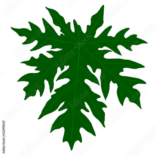 papaya leaf, green papaya leaf isolated on background with clipping path. exotic tropical tree leaf in free hand drawn style use as design element.
