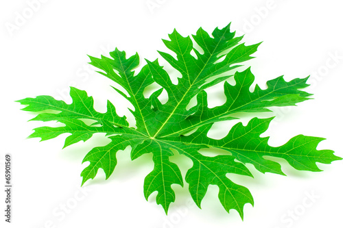 Papaya tree leaf on white background