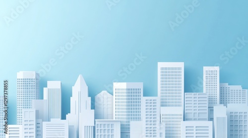city landscape, building, paper, architecture, skyline, panorama, modern, urban, city, view, three-dimensional, illustration, perspective, design, simple, geometric, abstract, clean, blue, light, background, minimalist, image, white, model, creative, art, background, horizontal, flat, digital, graphic, texture, structure