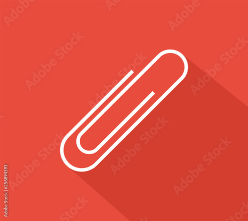 Paper clip sign icon on red background. Flat style. Vector illustration.