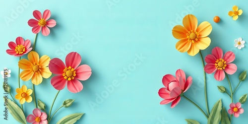 Paper cut spring flowers in vibrant colors on a white background with ample copy space for text, ideal for spring-themed designs and promotions, vibrant colors, creative