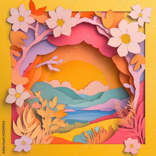 Papercut Blooming Flowers, Lush Landscapes, and Changing Seasons: Abstract Simple Minimal Joyful and Colorful 2D Layered Layout