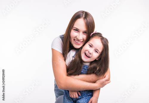 isolated, family, fun, mother, daughter, hugging, love, white, background, children, baby, people, attractive, beautiful, childhood, cute, female, smile, young, mother, children, woman, happy, adult, beauty, care, healthy, caucasian, face, girl, little, natural, play, portrait, pretty, 2, eltern, relaxing, cheerful, closeup, happiness, life, lovely, motherhood, studio, together, casual attire, mother, 20s, 30s
