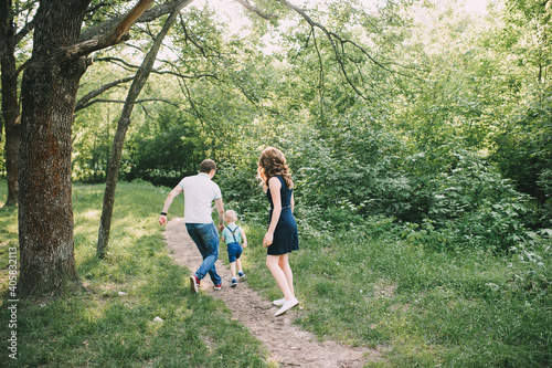 parents walk with their son in nature